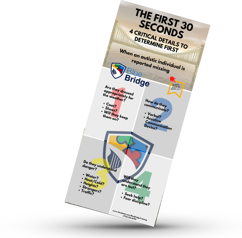 At Blue Bridge Training, our mission is simple: empower first responders and families with the practical tools, training, and real-world guidance they need to keep autistic individuals safe. Whether you’re an agency seeking proven autism response solutions or a caregiver looking for practical safety resources, you’ll find clear answers and actionable support here—rooted in lived experience and a commitment to making a difference.