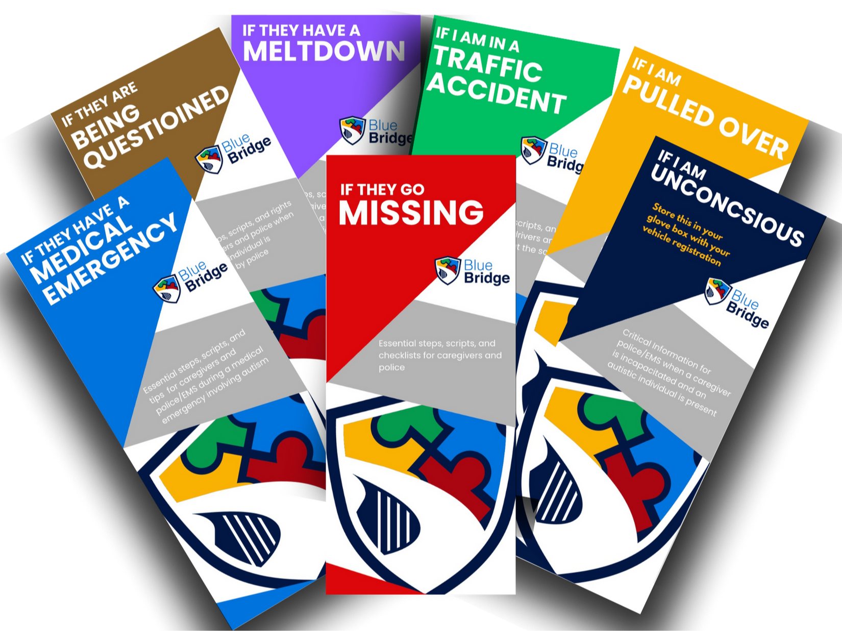 Bring the power of a whole advocacy team with you—seven expertly crafted Blue Bridge brochures, each with its own hero character, ready to guide you through any autism emergency or interaction. Whether it’s a meltdown, a medical emergency, or a traffic stop, the Autism Hero Pack puts calm, clarity, and confidence in your pocket.