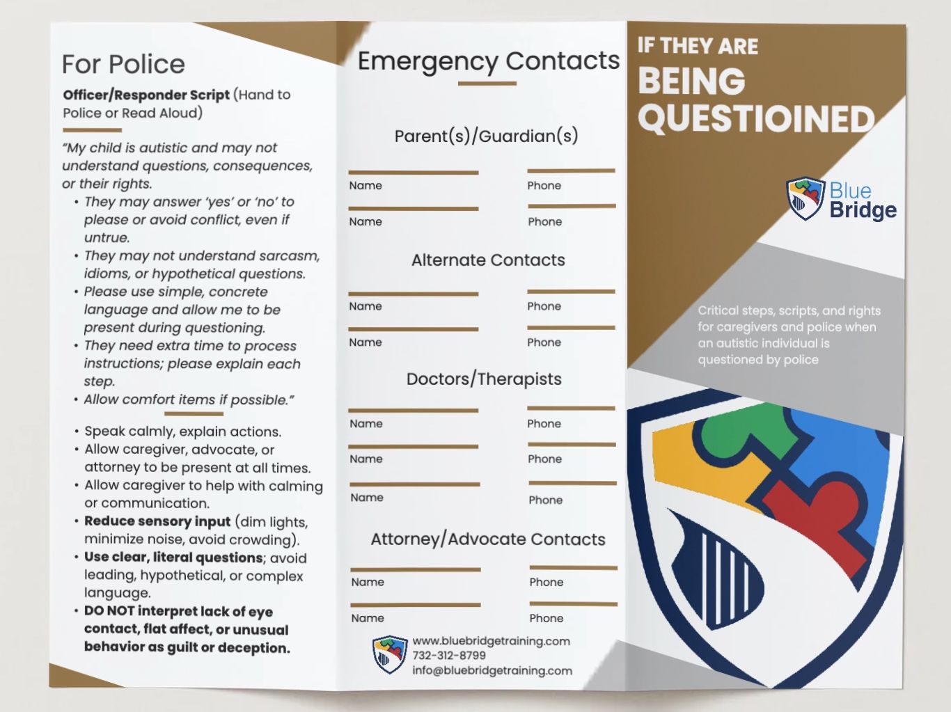 This scenario guide empowers autistic individuals and their caregivers to navigate police questioning safely and confidently. It provides scripts to explain communication needs, a step-by-step checklist for asserting rights, and fill-in sections for legal and emergency contacts. With real-world examples and advocacy tips, this brochure helps prevent misunderstandings and ensures fair, respectful treatment during stressful encounters.